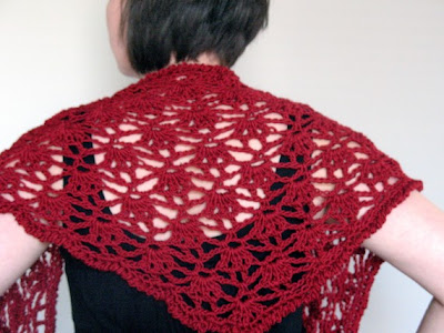 This beautiful lightweight wrap is crocheted from rich red yarn.
